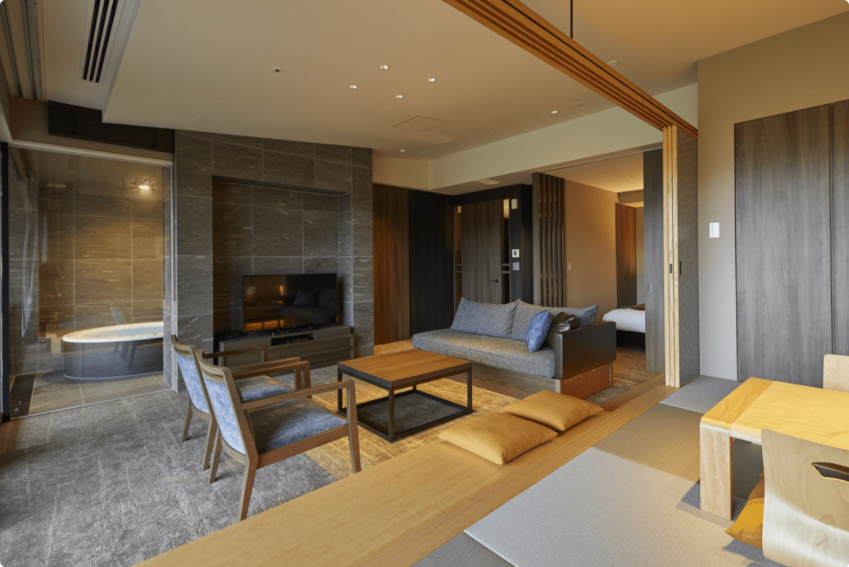 客室は平均60m²を超え、100m²を超えるスイートタイプも。